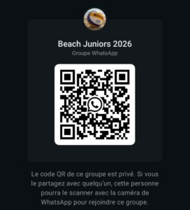 Communications par whatsapp sur le groupe « Beach Junior 2026 »